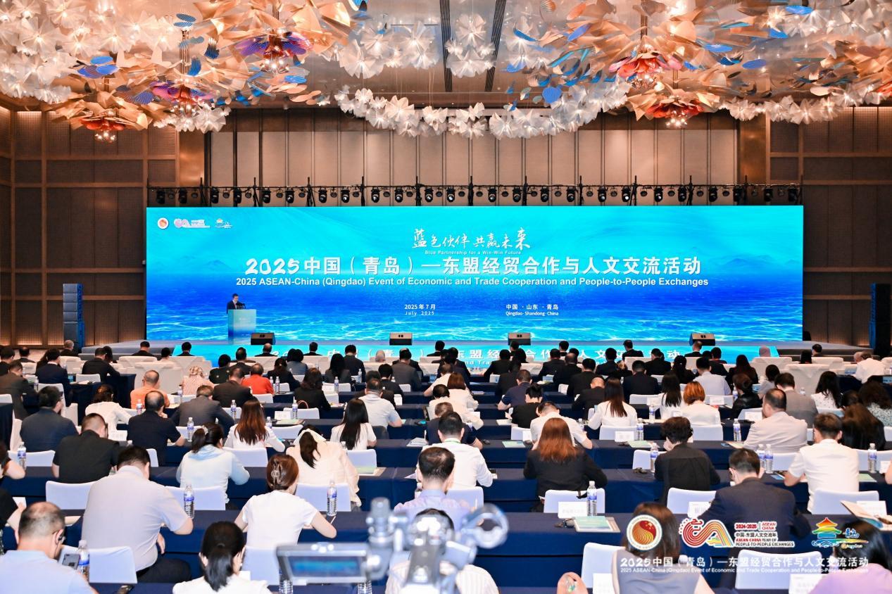 7月3日-5日,以“蓝色伙伴 共赢未来”为主题的2025中国(青岛)-东盟经贸合作与人文交流活动在青岛海天中心举行。活动由中国-东盟中心、青岛市政府主办,市委外办、市工业和信息化局、市海洋发展局、市商务局、市文化和旅游局、国信集团承办,设置经贸合作推介、人文交流活动和青岛市重点项目参访考察等板块,300余名来自中国、东盟多国及相关国际组织的嘉宾出席。