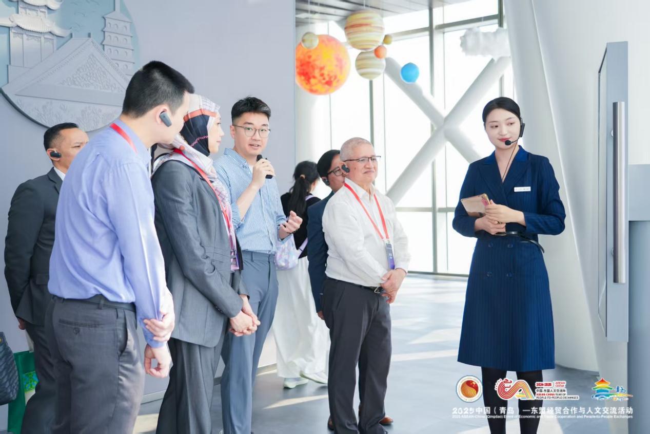 “云上海天”城市观光厅为东盟外宾留下了颇深印象。在369米的高空,从80层艺术中心的“文化导入”,到81层观光厅的“场景停留”,再到82层餐吧的“消费转化”,每一次空间转换,都是城市经济价值的叠加。这一全国首个“进阶式文旅综合体”的创新思路,也为东盟国家与青岛的文旅产业合作拓展了新的可能。