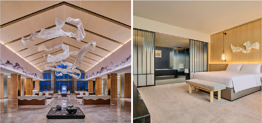 青岛石灿酒店,希尔顿格芮精选的设计由"石之印记"展开,将石材元素贯穿于酒店各个空间。