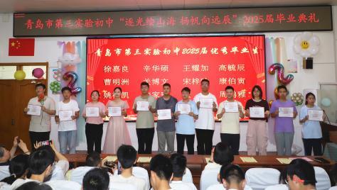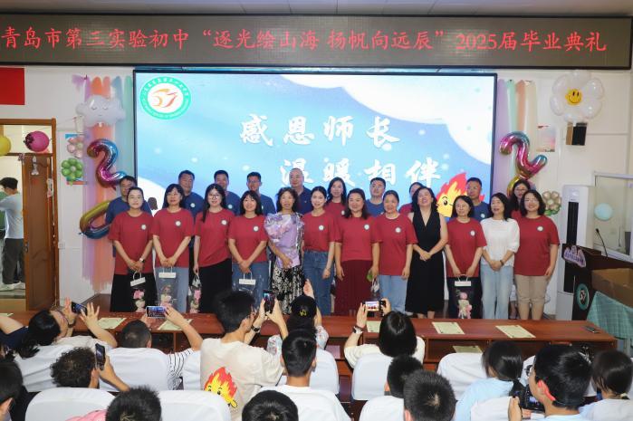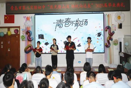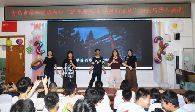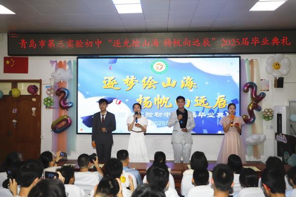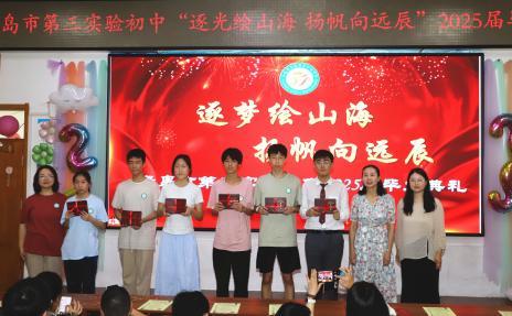 凤凰花又开,骊歌再轻唱。七月的校园,阳光透过树叶的缝隙,洒下斑驳的光影,仿佛为美丽的青春岁月镀上了一层温柔的金色。7月3日,青岛市第三实验初中隆重开展“逐光绘山海 扬帆向远辰”离校课程暨2025届毕业典礼,为即将踏上新征程的毕业生们送上最真挚的祝福。