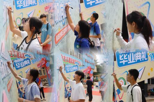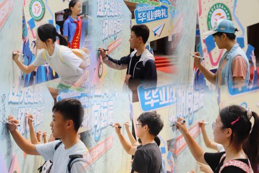 签名墙前,人头攒动,热闹非凡。毕业生们怀揣着激动与不舍,在墙上郑重地签下自己的名字,一笔一划,镌刻下三年的青春时光,我们用镜头定格下这难忘的瞬间,这些瞬间,如同一颗颗晶莹的珍珠,串联起三年的点点滴滴,成为青春最珍贵的印记。