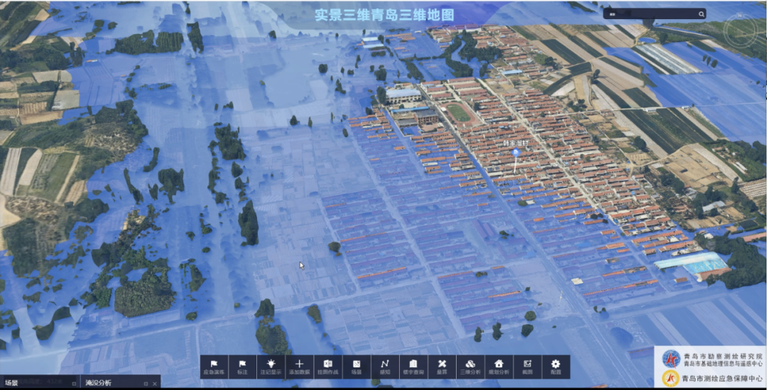 在演练核心科目“险情模拟分析”环节,运用青岛勘测院构建的高精度实景三维应急指挥平台,模拟某地水库即将漫坝情景,精准推演出不同时间节点的淹没范围、受影响村庄及人员分布。
