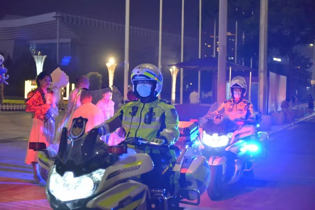 “我们已构建起覆盖会场内外重点区域、通道、人群聚集点及周边关键地带的动态防控网络,采用‘步巡+车巡’相结合方式,24小时守护游客安全。”现场执勤民警介绍道。常态化巡逻期间,巡逻组采取折返式巡逻方式;在人流密集时段,及时加大警力投放,每组增派警力进行对向巡逻,最大限度提高见警率和管事率,确保能够快速处置各类突发案事件,维护现场秩序平稳有序。