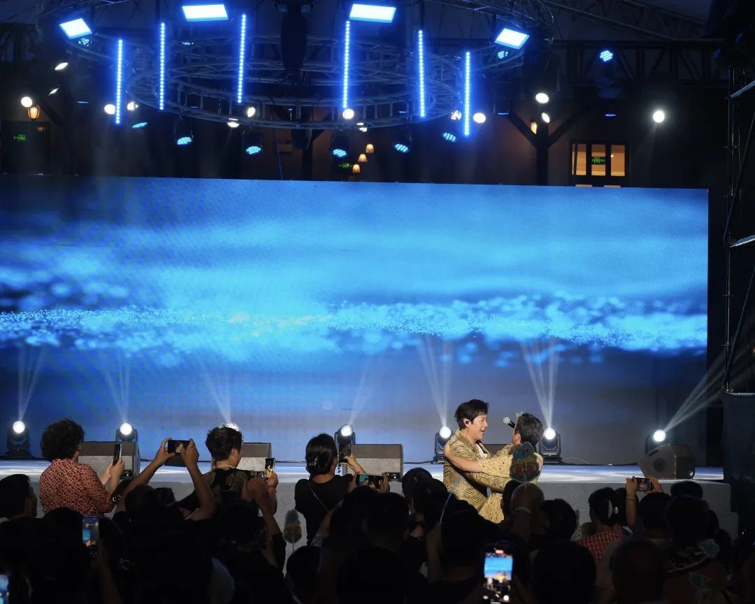 演出现场气氛热烈非凡,当蔡国庆走下舞台,瞬间被热情的观众包围,他微笑着与观众一一握手,引发台下阵阵欢呼。值得一提的是,演出现场,蔡国庆与青岛重庆路小学学生徐紫嫣合唱《三百六十五个祝福》,为这首歌注入了充满活力的新生力量。
