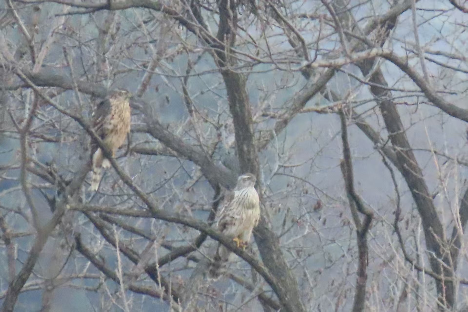 苍鹰雌鸟(右)和雄鸟(左)(摄影:徐克阳)