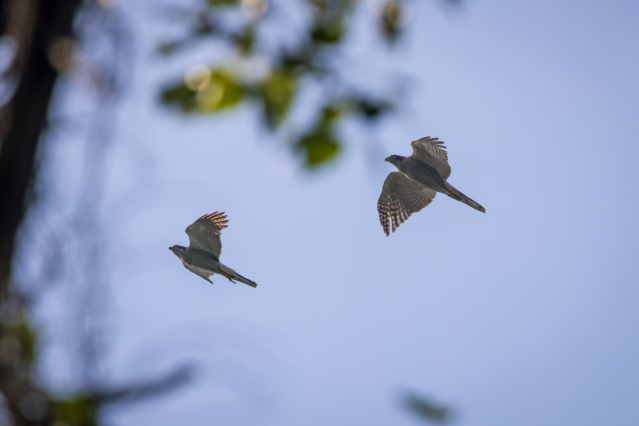 苍鹰(Accipiter gentilis),鹰科鹰属,是一种中型猛禽,作为森林生态系统的顶级捕食者,在营养级联效应中发挥关键作用,其捕食范围之广令人惊叹——从常见的野兔、松鼠、鸠鸽等中小型猎物,到雀鹰、隼类等其他猛禽,甚至是体型相当的猫头鹰,都在它的菜单之上。研究表明,苍鹰对栖息地要求苛刻,其存在直接反映森林生态系统的健康程度,其成功繁殖更是需要连续多年的优质栖息地保障。大泽山区域苍鹰的成功繁殖以及如此高密度的聚集现象,从侧面反映了该区域森林生态系统具有优越的生产力和稳定性。