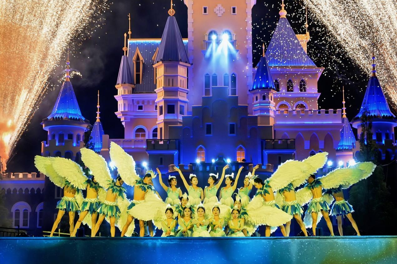 《琴岛故事》2.0版本以“琴岛”岁月流转为脉络,通过“美人鱼、渔夫、鲁绣、海鸥、现代青岛、海军”六个章节的叙述,配合全新升级的烟花秀,将青岛文化基因与现代魅力编织成一副流动的光影画卷。烟花也成为这场演出的点睛之笔——色彩、造型、节奏精心编排,与舞台表演完美融合,将演出气氛推向顶点;全新的灯光音效、73件新增道具……每一处细节的雕琢都让《琴岛故事》的宏大叙事有了体温。