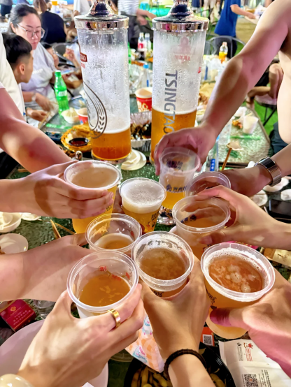 啤酒的醇厚与崂山风物的鲜香在晚风中交织,