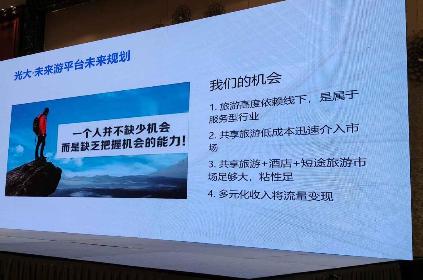 光大未来游执行总裁牛倩玉作为平台技术领军人,在大会上重点阐述了“未来游生活家”小程序平台的核心价值与技术优势。他指出,平台以“共享旅游,最低成本看世界”为核心理念,通过互联网技术与旅游资源的深度整合,打造一站式便捷服务生态。