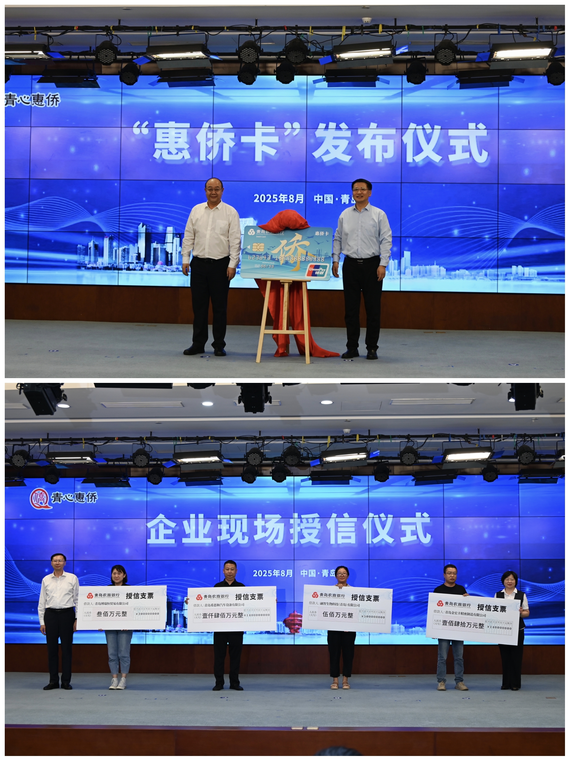 活动现场,还举行了“惠侨卡”揭卡仪式和企业现场授信仪式,青岛农商银行现场为4家侨资企业授信,总金额达2340万元。马来西亚中东矿业贸易有限公司、青岛聚大洋藻业集团有限公司、青岛安欣达化工物流有限公司等企业签署项目合作协议,进一步推动侨资与本土资源的深度合作。