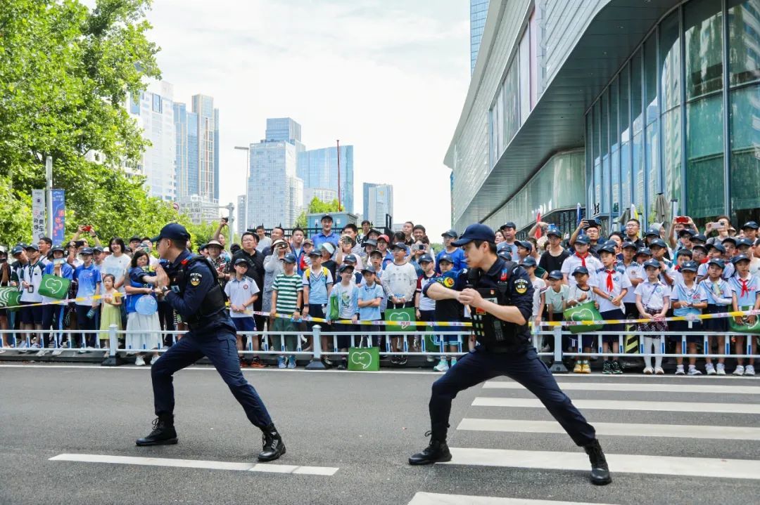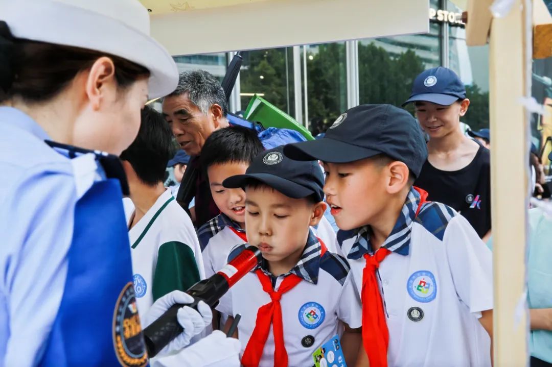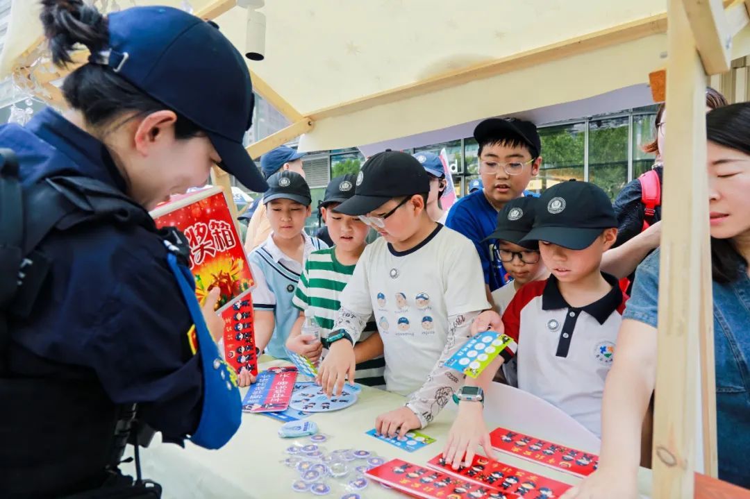 警用装备体验区,营员们在特警支队展位前,排队感受防暴装备的安全和厚重,上手操作观察排爆机器人机械臂的灵活性;治安支队展位前,营员们学习防火、防溺水、防欺凌知识,增强自身防护能力;刑侦支队展位前,民警通过真实案例拆解新型诈骗话术,提高了青少年识骗防诈能力;网安支队展位前,营员们学习了安全文明上网知识;禁毒展位前,营员们加深了对毒品危害性的直观认识;在森警支队展位前,营员们培树了野生动植物保护的意识;在交管支队互动展区,营员们积极参与交通安全答题闯关活动;在市北分局青鸾特巡队前,一张张照片定格了营员们的张张笑脸。一片“哇!”声、一片笑声、一片掌声,营员们的“警察梦”正悄悄发芽。