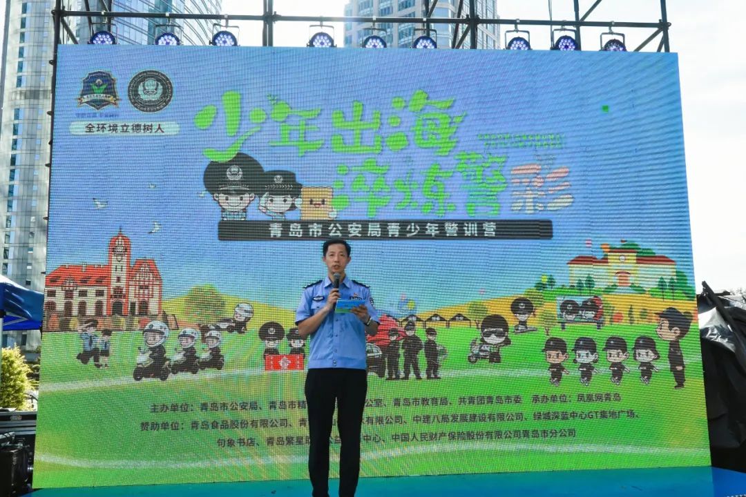 8月10日上午,在青岛绿城深蓝中心GT集地广场上,200名青少年营员在警官教员带领下高声齐颂《少年中国说》。由青岛市公安局、青岛市文明办、青岛市教育局、共青团青岛市委员会联合主办的“少年出海 淬炼警彩”2025年青少年警训营正式启动。