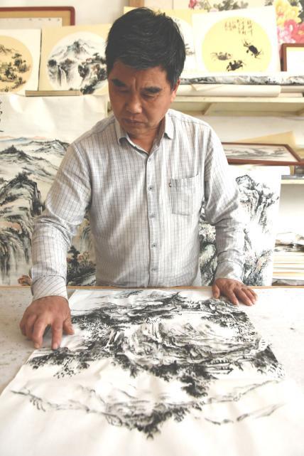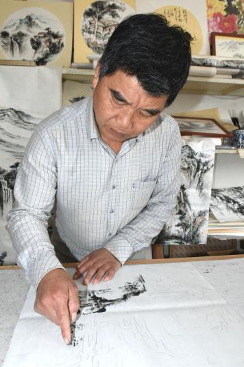 孙京善,字立国,号一指山樵,平度指画第三代传承人,平度市美协会员,四十余载深耕不辍,以指代笔,让指尖技艺成为连接传统与发展的桥梁。从农家小院到传承舞台,从技艺课堂到产业新局,他用指墨晕染,书写着平度指画助力乡村文化振兴的生动故事。