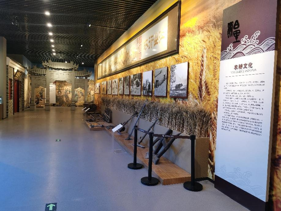“泊里这个地方,农耕文化深厚,乡村民俗丰富,在民间礼仪、生产生活等各个方面都有体现。”王巧云说道,“一进博物馆的这幅巨型古铜色浮雕,就再现了勤劳的泊里人民在这片土地上开疆拓土、繁衍生息、辛勤耕耘的生动场景,既有先民们在土地上劳作耕种的身影,又有劈波斩浪的海上作业场面,演绎出古老市镇的繁华与昌盛。”王巧云指着浮雕说:“咱们泊里有个泊里大集,已经有300多年的历史了,几乎与泊里镇同时起源。”从古到今,泊里大集一直是周边农村生产生活资料交易和农产品买卖的重要集市,是繁荣农村经济、沟通城乡联系的桥梁,也是乡亲四邻交流与聚会的重要场所。博物馆一隅复原了古老泊里大集的繁荣场景,画面上商铺、酒楼众多,货物、商品云集,商人们在此交易,百姓络绎不绝。逼真的灶台、水井,农民使用的木杈、麻袋包、麦草垛……每一件展品都展现出泊里深厚淳朴的农耕文化。