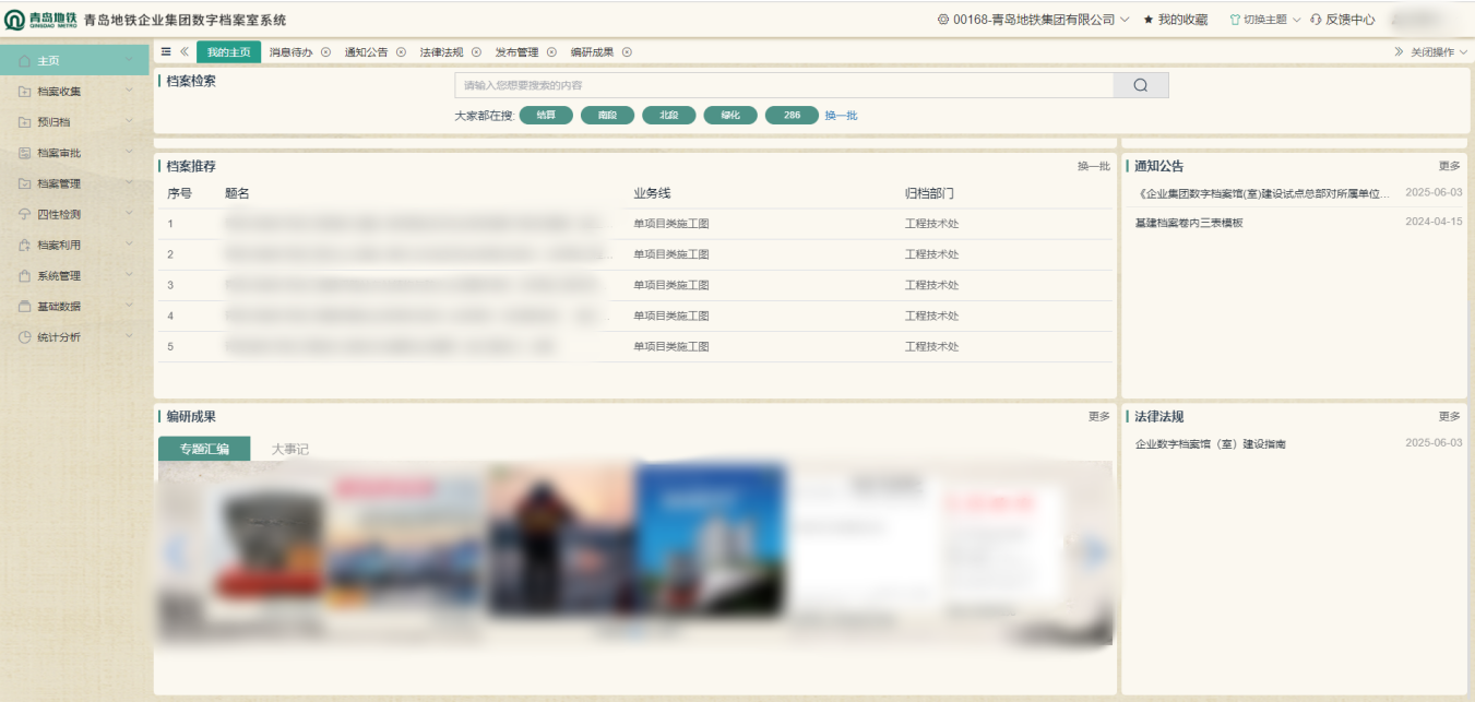 目前青岛地铁已开通运营8条线路,档案管理工作面临工程基建档案数量激增等难题,而传统档案管理模式存在体量大、移交时间紧、质量难把控等问题,同时传统档案服务方式单一,资源利用率低,档案价值难以发挥最大化发挥。在传统档案管理模式下,这些问题一直是很难解决的痛点、难点。青岛地铁构建“1N31数字化转型体系(即指:“1”大转型愿景:成为行业领先、世界一流的数智地铁企业;“N”个转型场景:智慧建造、智慧运行、智慧运维、智慧企管;“3”大支撑架构:应用架构、技术架构、数据机构;“1”套保障体系:人才、机制、安全、数据、运维、政策)”之后,问题解决迎来了转机,青岛地铁在数字化转型的土壤下,着手实施档案的业务重构与流程再造,实现了档案管理从传统到数字化的跨越。