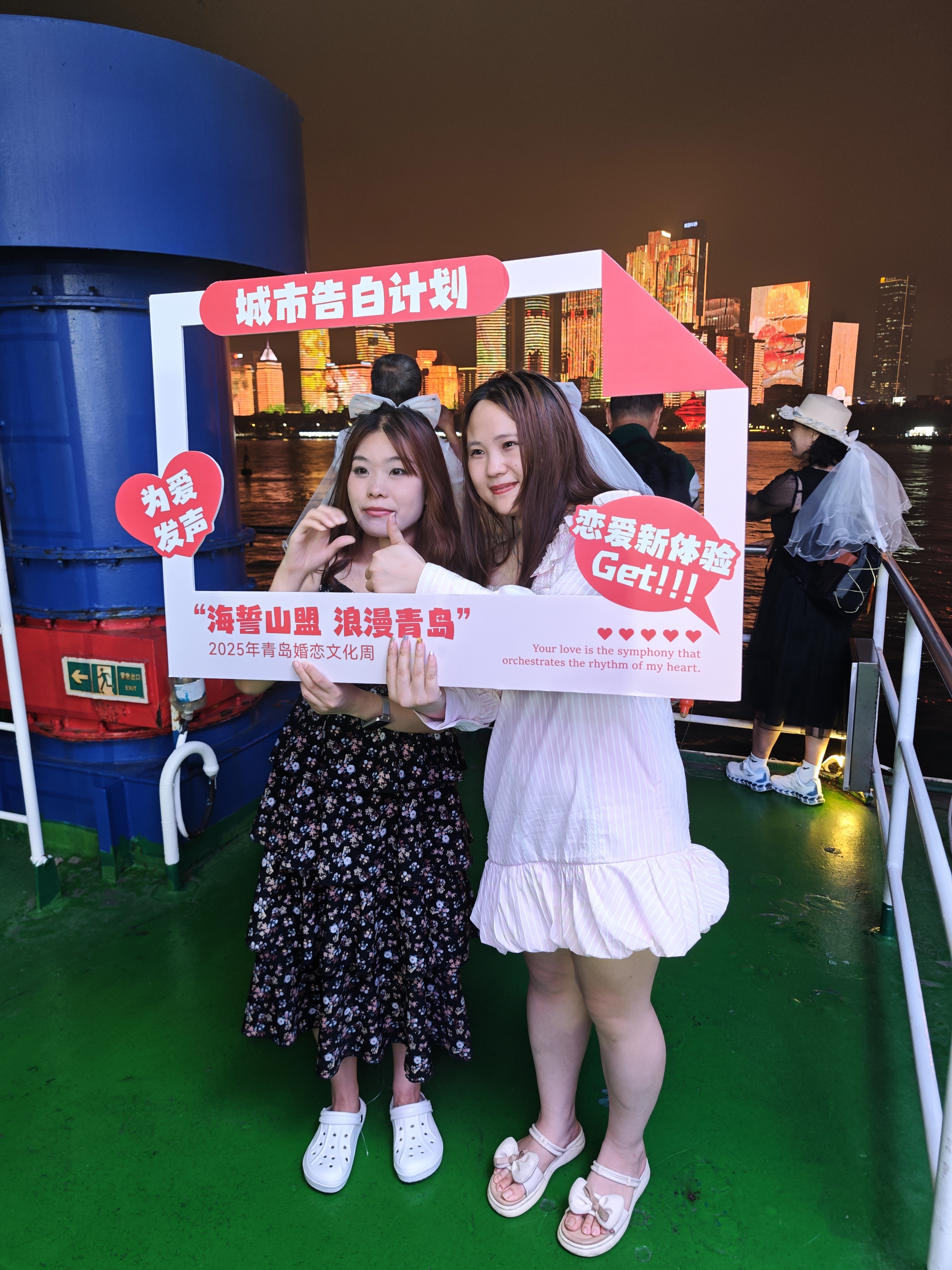8月29日晚,“海誓山盟 浪漫青岛”2025年青岛婚恋文化周系列活动,爱情音乐会&城市告白活动“夜游浮山湾”专场拉满七夕海上浪漫。音乐会跳动的音符,洁白的头纱,浮山湾摩天楼群璀璨如星河,七夕爱情主题灯光秀震撼上演,城市地标在夜色中化作梦幻画卷。活动中,挚爱相依,好友共聚,海风拂面,霓虹倒映,让每一次快门都定格成永恒。