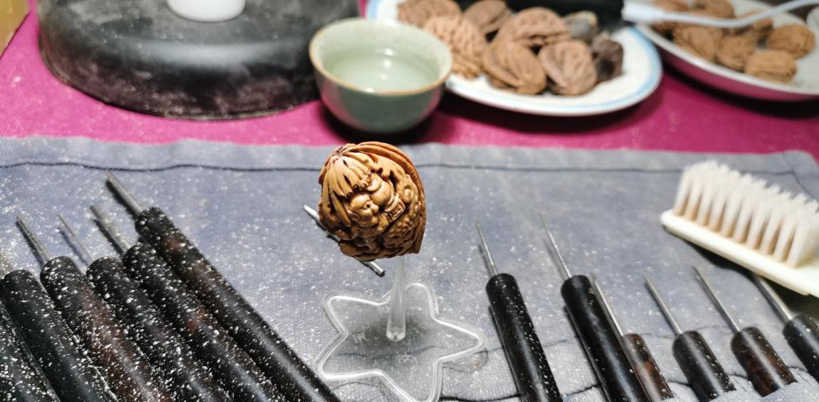 核雕,这门起源于南北朝、鼎盛于明清的千年微雕技艺,以桃核、杏核、橄榄核为载体,在方寸间勾勒宗教、民俗、人物的万千气象。如今在城阳区棘洪滩街道,核雕匠人肖丕习正以手为桥、以心为镜,让这门古老手艺焕发出新的生机。