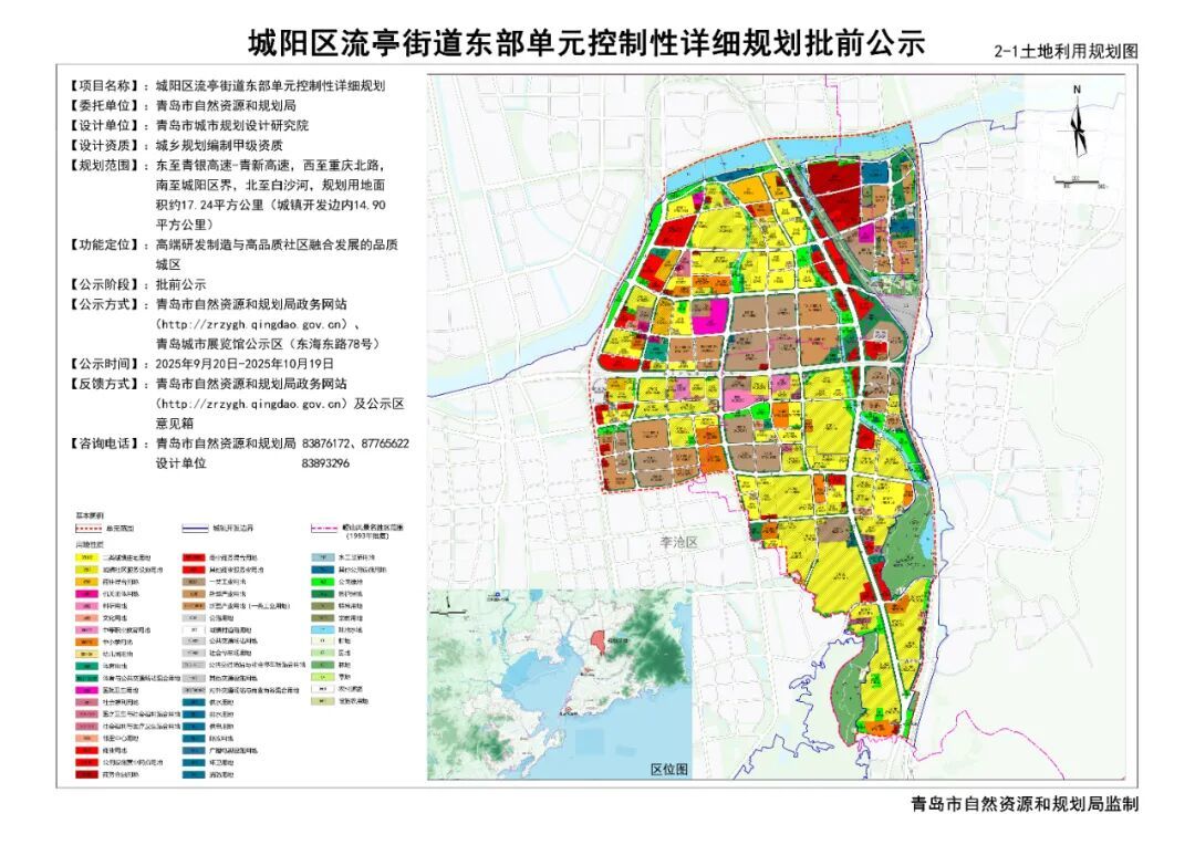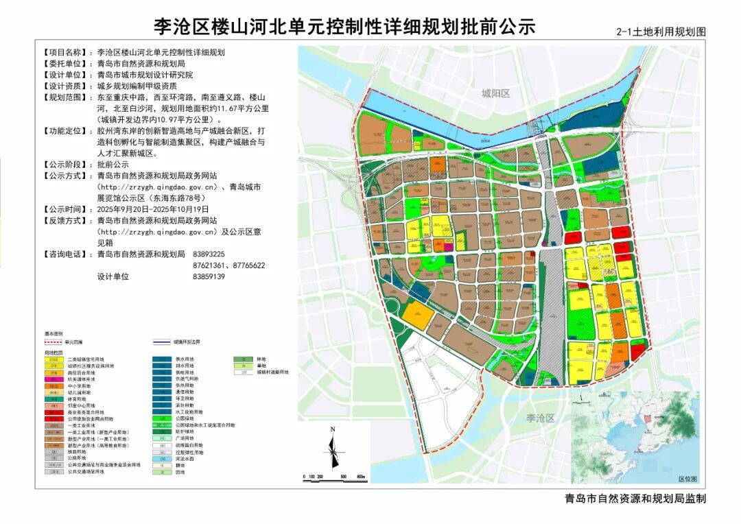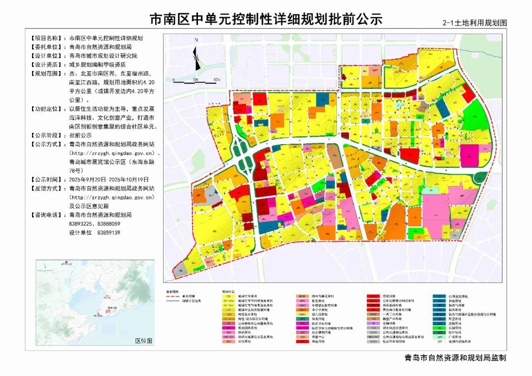 9月20日,青岛市自然资源和规划局集中发布市南区、李沧区、崂山区及城阳区十余个重点单元的控制性详细规划批前公示。