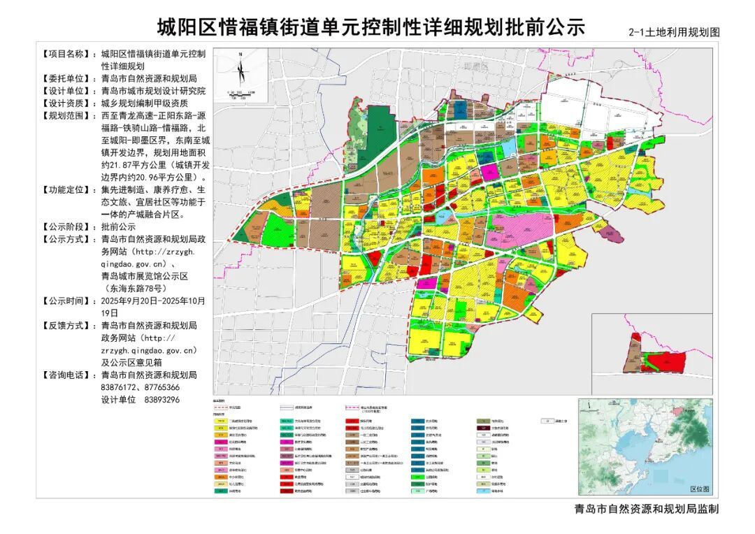 惜福镇街道单元则致力于打造集先进制造、康养疗愈、生态文旅、宜居社区等功能于一体的产城融合片区。规划范围西至青龙高速-正阳东路-源福路-铁骑山路-惜福路,北至城阳-即墨区界,东南至城镇开发边界,规划用地面积约21.87平方公里。