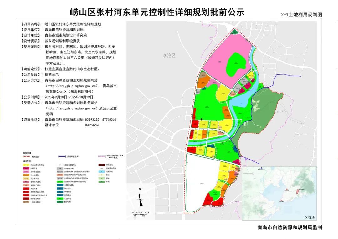 此次规划中,崂山区张村河板块被细分为东、西、中三个单元,分别定位为山水生态社区、数智融合创新发展示范区和国际化都市核心区。
