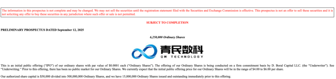 根据最新文件,青民数科计划以每股4至6美元的价格发行625万股,募资规模预计在2500万至3750万美元之间。