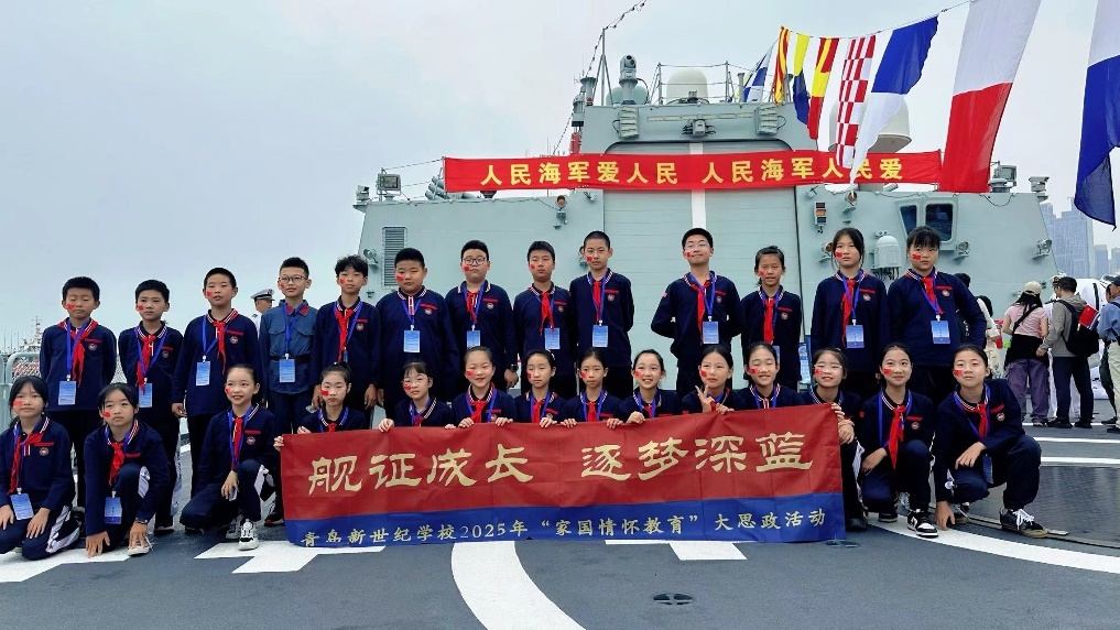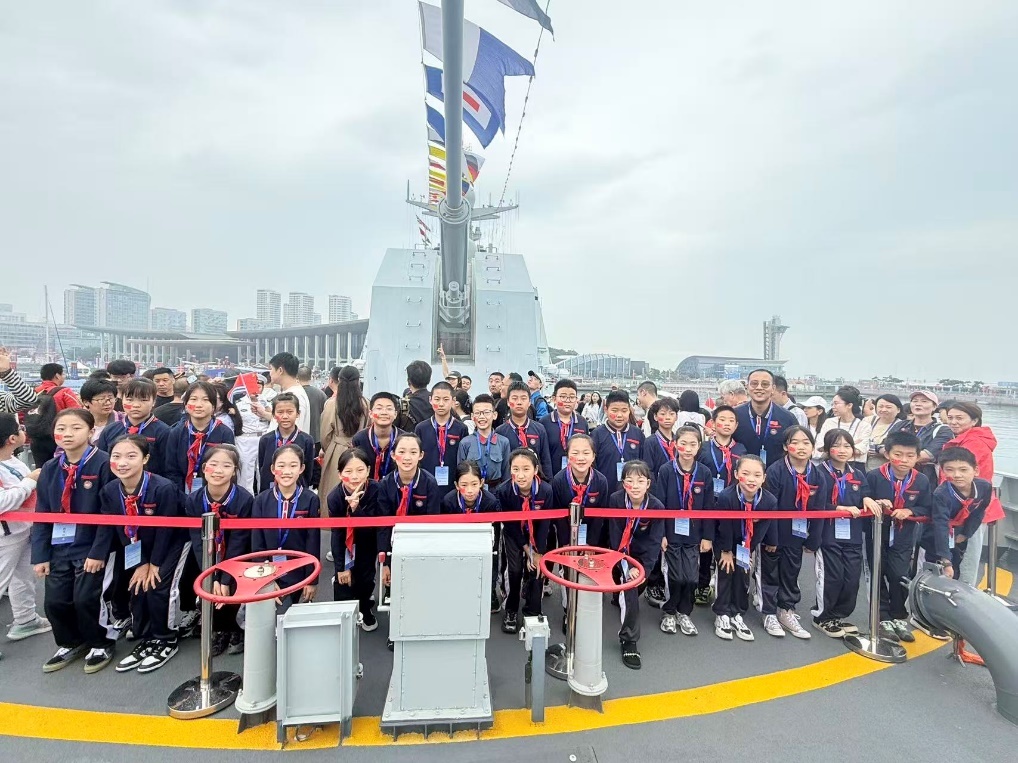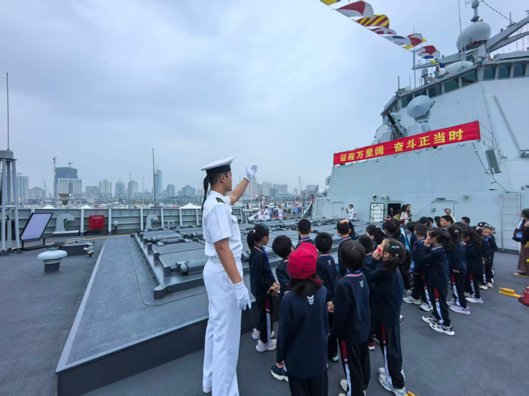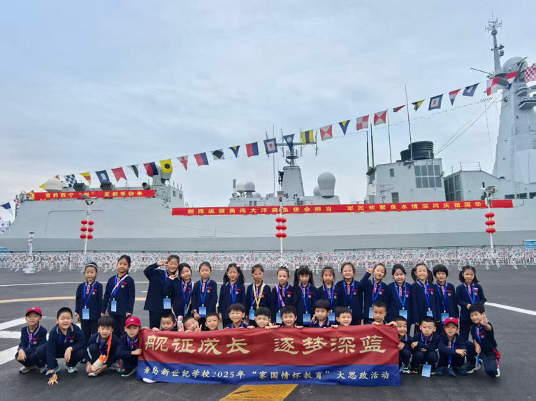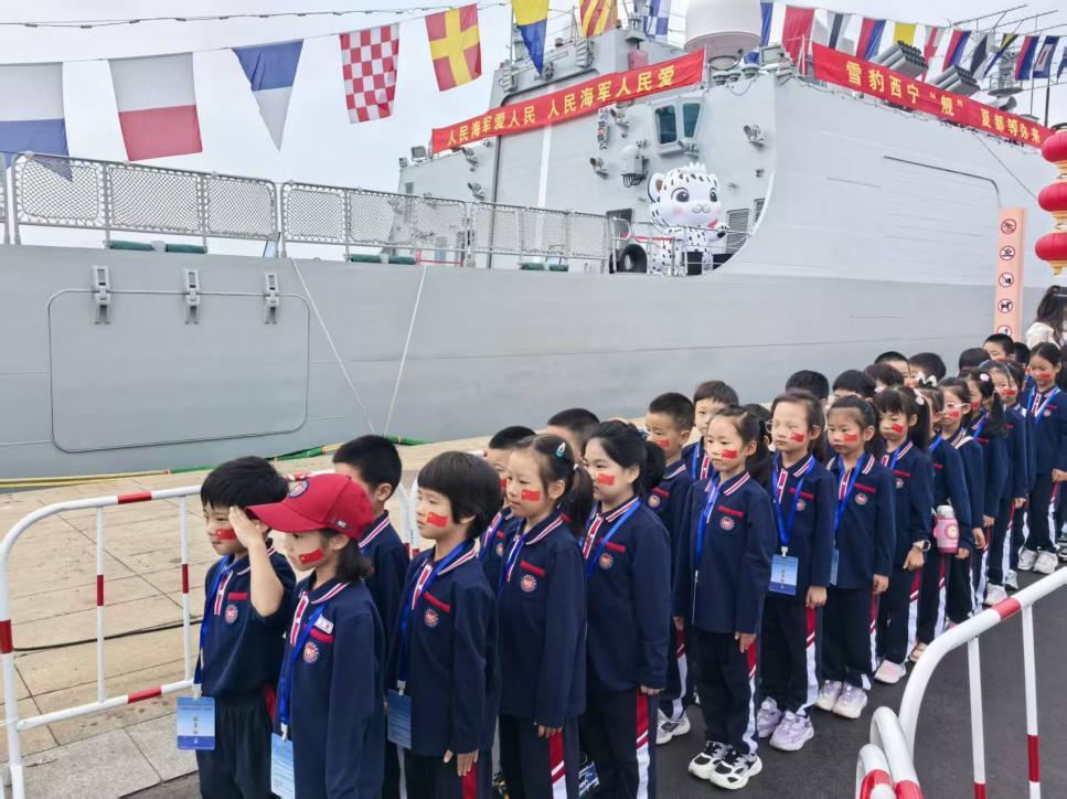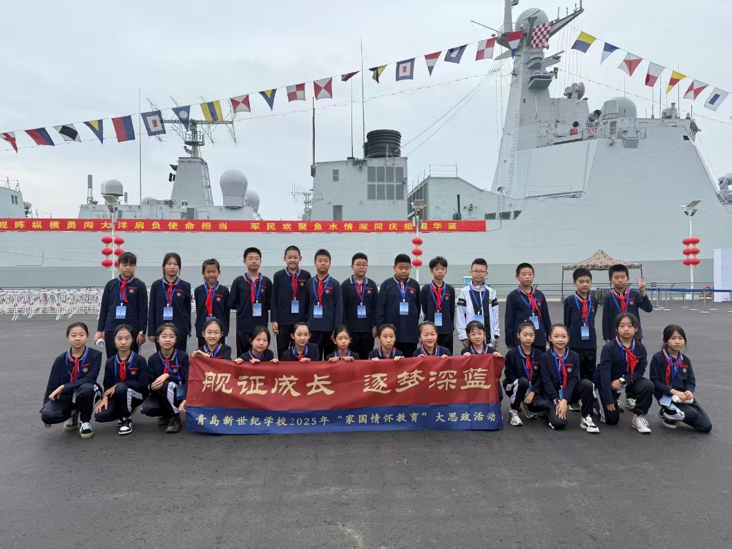 近日,青岛新世纪学校学子在青岛奥帆中心码头,一起参观北部战区海军导弹驱逐舰“西宁舰”、导弹护卫舰“芜湖舰”并参加了现场组织的“舰证成长,逐梦深蓝”青岛市中小学生文艺展演活动。