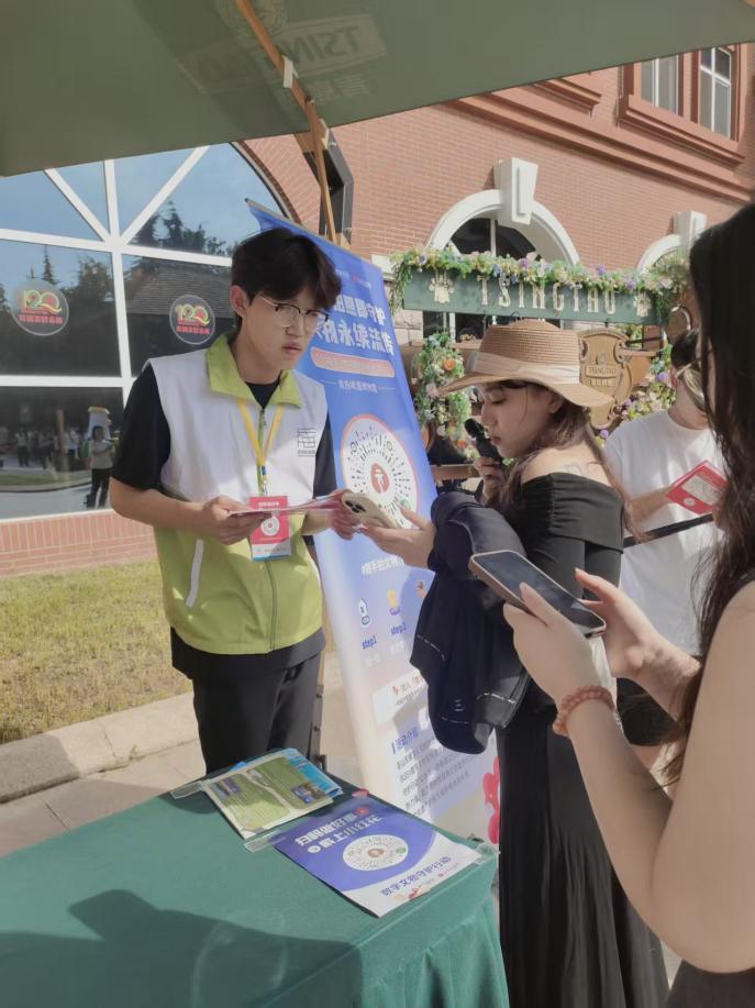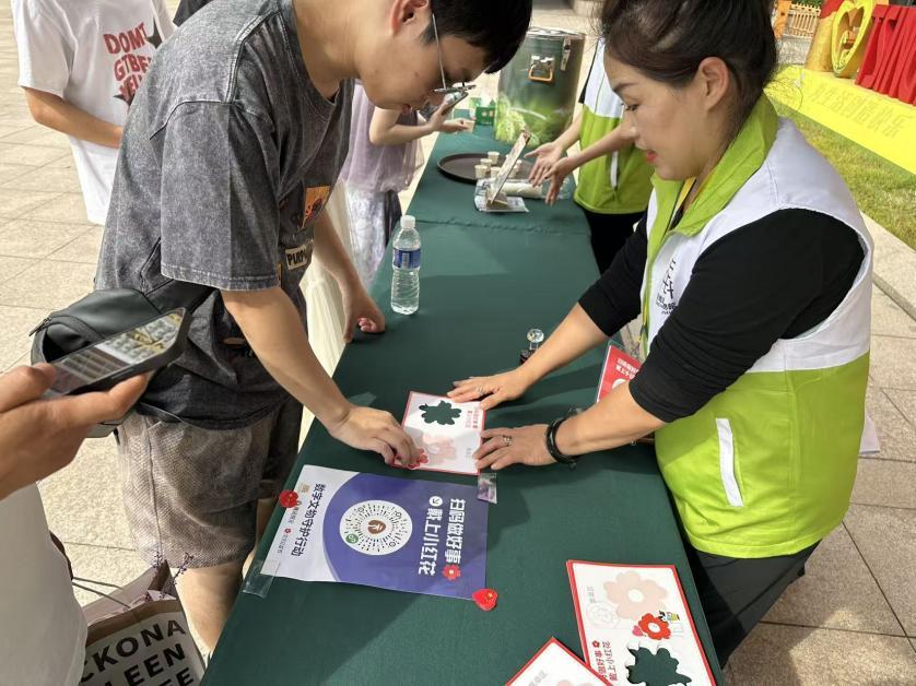 活动现场,“送你一朵小红花”互动区成为最热门的打卡点。游客们纷纷驻足,通过扫码-拍照,上传青岛啤酒博物馆文物,领取活动定制版小红花贴纸和专属集章卡片。“既能为文物守护出份力,又能留下国庆打卡纪念,这种形式特别有意义。”带着孩子参与活动的市民王女士笑着说,手中盖上“小红花”纪念章的集章卡格外醒目。