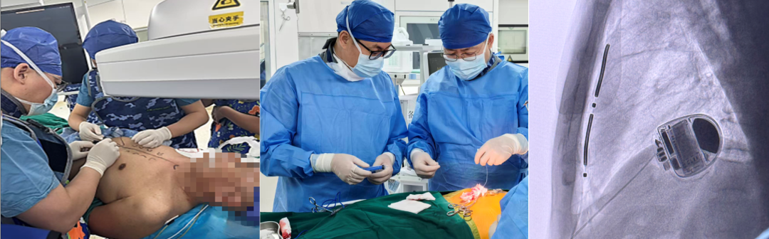 患者为53岁男性,既往罹患重症心肌炎,经重症医学科ECMO支持的综合治疗后虽然心功能基本恢复,但多次动态心电图显示,患者存在短阵室性心动过速、频发室性早搏,为心源性猝死的高危人群,有植入式心律转复除颤器(ICD)植入进行猝死预防的指征。患者及其家属对于传统经静脉除颤系统可能带来的血管损伤和感染风险存在顾虑,同时也希望术后能够恢复日常生活,不影响运动习惯,因此选择植入EV-ICD血管外植入式心律转复除颤器。结合患者病情并充分考虑患者及家属意愿后,王守东团队组织多学科会诊,为患者制定了完善的手术方案。术前向医务部报备重大手术以及新技术申请,通过胸部CT评估患者解剖结构,规划电极植入路径,并与心外科专家、麻醉医师共同讨论手术操作细节,对术中可能遇到的问题进行了充分的讨论和准备。EV-ICD植入手术过程顺利,胸骨下电极稳定,电学参数正常,除颤测试通过。患者术后转回普通病房,优化各项参数,恢复良好,术后 5 天顺利出院。