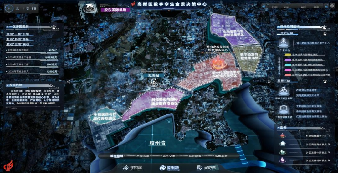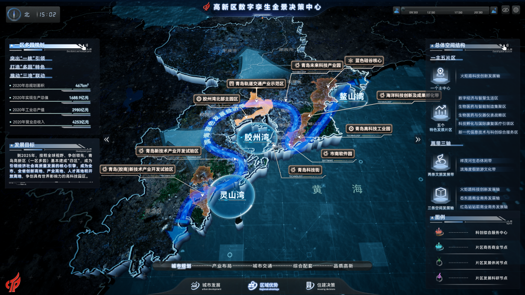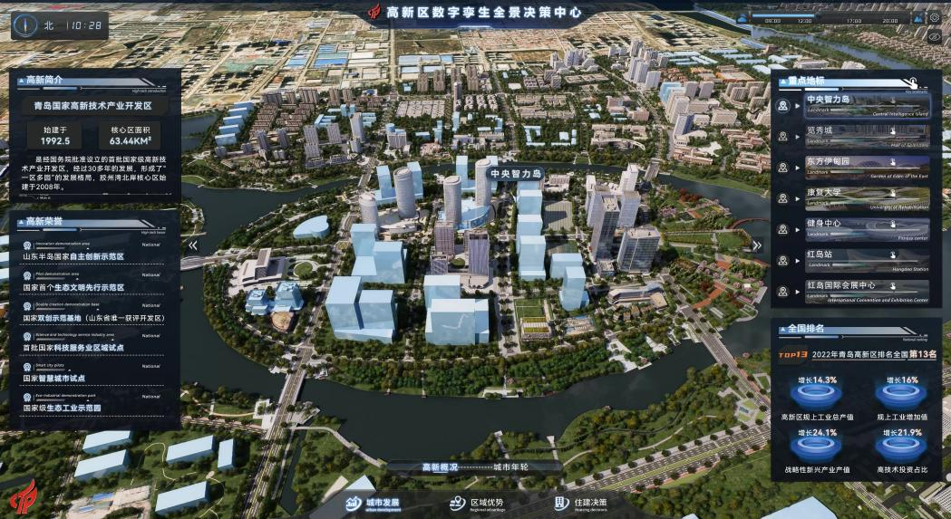 在此基础上,青岛高新区还创新打造“数字孪生全景决策中心”与“重大工程进度遥感监测系统”。两大系统如同“智慧之眼”与“决策之手”,实现对重点项目的实时监管与动态评估,为城市运行提供可视化、可预测、可调控的智能支撑,助力城市治理者精准把握运行细节,及时优化策略,推动实现精准、高效、有序治理。