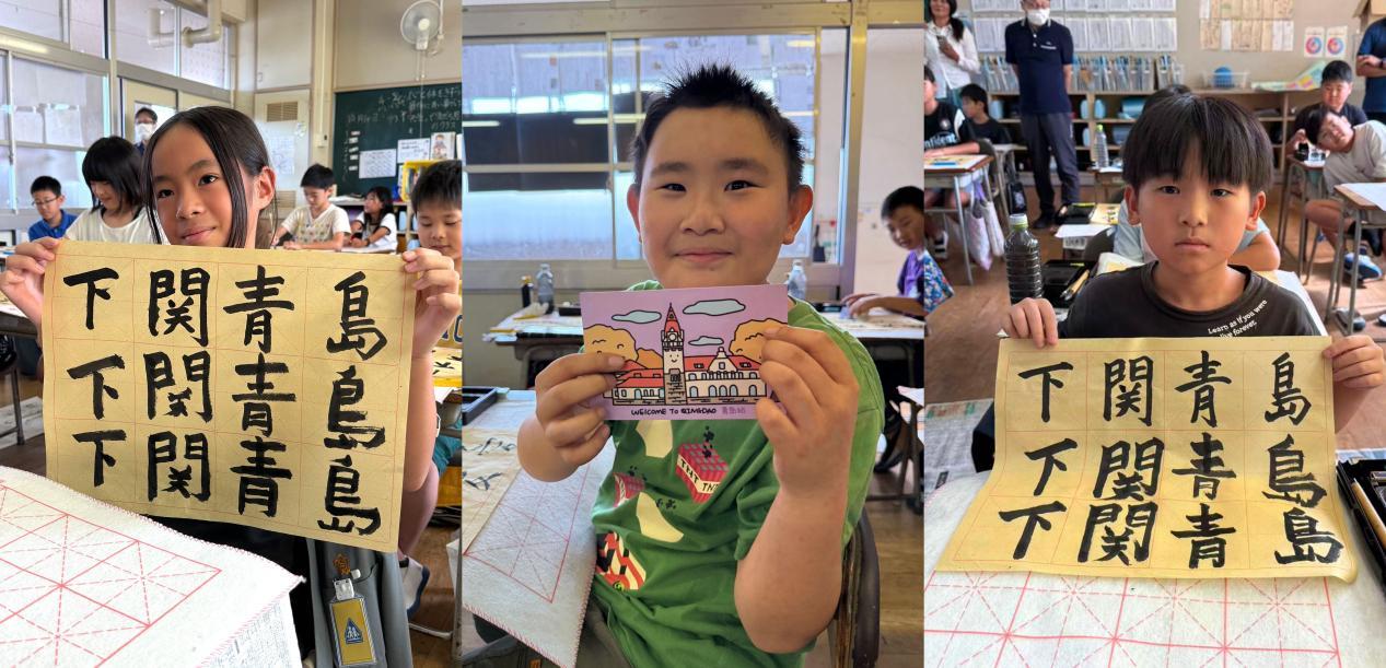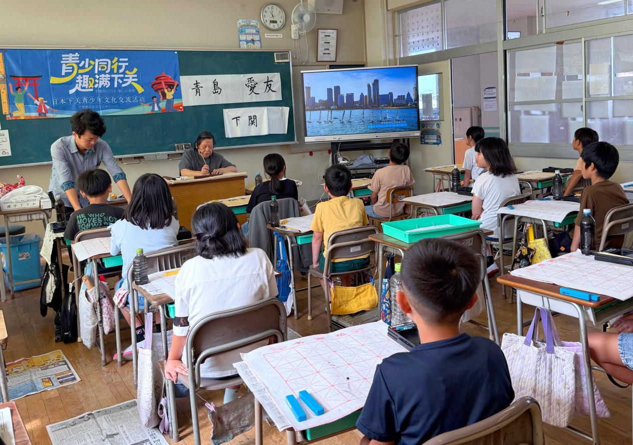 现场,青岛城市风光宣传片率先点燃了下关青少年的热情。随后,活动进入中华传统文化体验环节。在旅日华人画家、工笔画艺术家秦生老师的指导下,学生们拿起毛笔,于宣纸上工整地写下“下关 青岛 友爱”等汉字,亲身感受中国书法的笔锋与韵味;剪纸体验区也热闹非凡,大家依照模板剪出一个个精美的图案,体验中国传统手工艺的精巧与智慧;此外,现场还设置了“我印象中的青岛”明信片创作环节,让学生们用彩笔描绘出对青岛的美好想象。