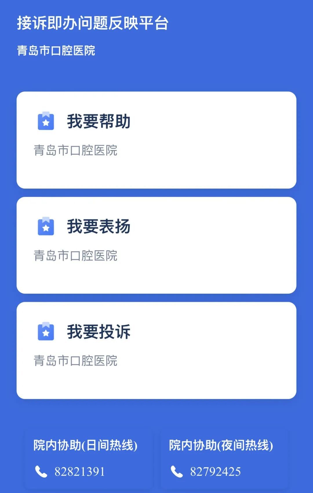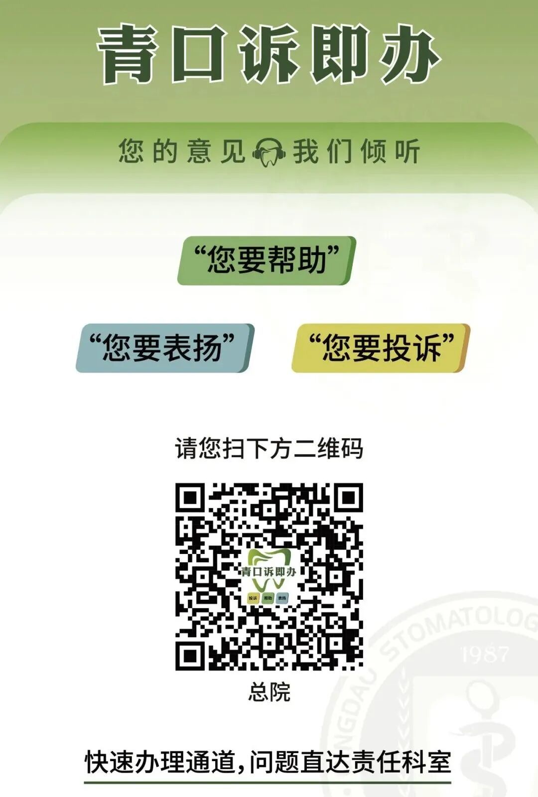 为进一步提升患者在医院的就医体验,让患者的每一个诉求都能被快速听见、迅速响应,青岛市口腔医院于10月正式推出了“青口诉即办”便民服务平台!它在全院同步启用,只为更快、更暖地帮患者现场解决问题!