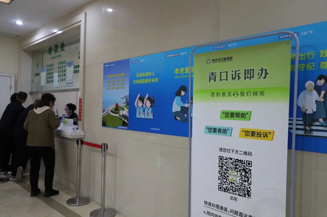 我们早已为您考虑周全!在医院及分门诊各楼层的候诊区、电梯间,您都能轻松看到醒目的“青口诉即办”二维码。扫码进去界面简单,一看就懂,一用就会!