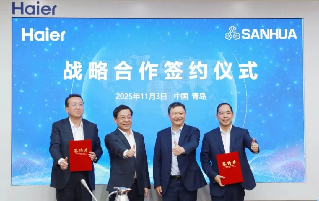 11月3日,海尔智家与浙江三花智能控制股份有限公司(以下简称“三花智控”)签订战略合作协议。据海尔智家介绍,双方将在协同研发并联、实验室共建、新兴领域布局等多个方面深化合作。