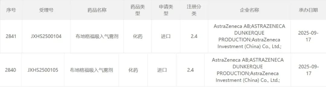 今年9月,国家药品监督管理局药品审评中心官网显示,阿斯利康的布地格福吸入气雾剂(英文商品名:Breztri®,中文商品名:倍泽瑞®令畅®)在华申报新适应症,已获受理。