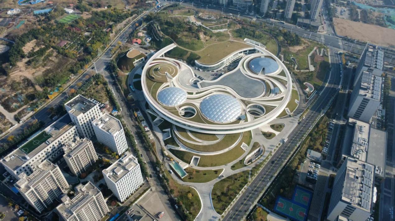 来到青岛虚拟现实创享中心,一座外形酷似“飞碟”的建筑瞬间映入眼帘。这座建筑面积达10.5万平方米的建筑,以“灵境飞舟”为设计理念,通过建筑与山体的巧妙融合,构建出现实空间、交互空间和虚拟空间三位一体的独特体验。