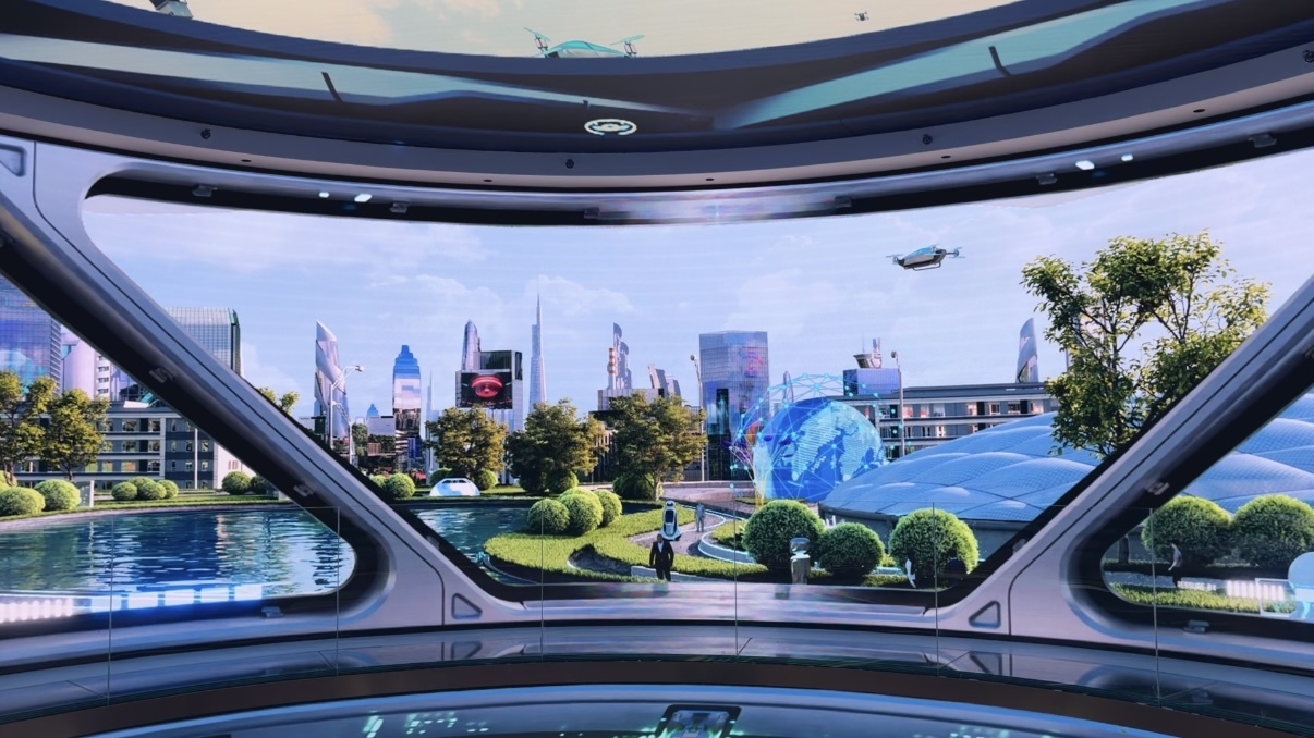 “我们借鉴了奥兰多迪士尼的设计理念,通过三块高清LED屏幕联动布局,构建了360度无死角的视觉包裹感。”讲解员介绍道。当启航模式启动时,滑轨玻璃幕墙从环幕两侧对称滑出,合围形成完整的封闭式沉浸空间,让人仿佛置身于一场穿越时空的无界探索旅程之中。