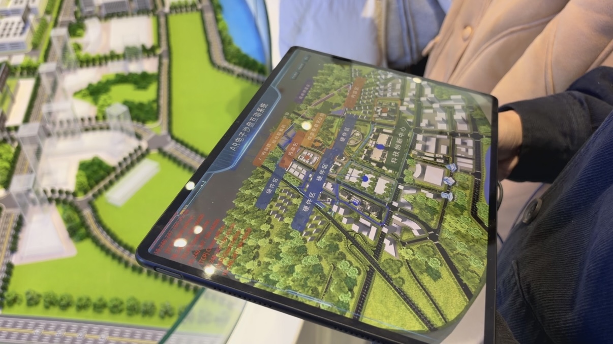 从宏观到微观、从整体到局部、从裸眼到强交互……在创享中心的园区展示区,通过碗幕裸眼3D数字沙盘、AR互动沙盘和园区数字孪生平台等展项,拉近了虚拟与现实的距离。
