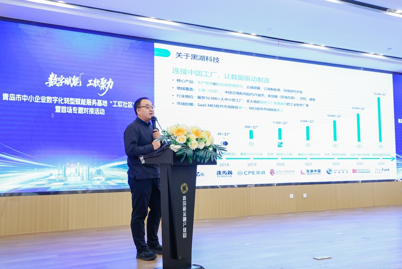 活动现场,四家优秀数字化服务商围绕数字化转型实战成果展开主题分享,为中小企业带来可落地、可复制的解决方案。上海黑湖网络科技有限公司聚焦“制造协同解决方案”,结合家电、机械等本地案例,演示了黑湖智造平台在采购协同、生产排程等场景的“小快轻准”应用;青岛诺亚信息技术有限公司针对中小企业“预算有限、需求灵活”的特点,介绍了“OMMES+柔性平台”的模块化工具与按需选配服务,有效降低转型门槛;青岛禾粒达数智科技有限公司通过电商订单处理、财务发票识别等实操演示,展现了“AI小蜜蜂数智员工产品”的降本增效优势;中国电信股份有限公司青岛分公司则聚焦“算网一体服务器”,讲解如何通过稳定算力网络与安全云存储,为中小企业搭建低成本信息化底座。
