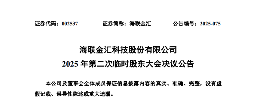 11月18日,海联金汇召开2025年第二次临时股东大会,选举产生公司第六届董事会,包含3名非独立董事和2名独立董事,共5名董事。