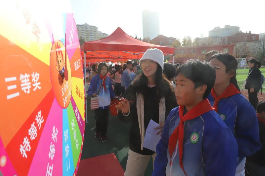 成功闯过的“小勇士”,即可获得触发“幸运大转盘”终极奖励的机会。当指针稳稳停住,同学们将会赢得以学校吉祥物“阳阳”为原型设计的专属文创产品,胜利的喜悦与自豪之情感染了现场的每一个人。