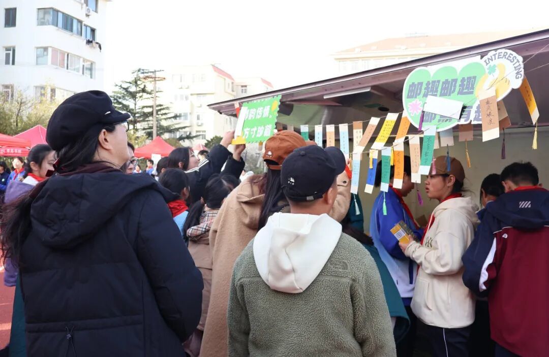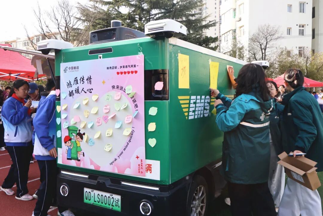 尤为引人驻足的是青岛邮政的特色互动区。现场展示了智能无人快递车,让学生们直观感受现代物流的“黑科技”。“鸿雁传情”信箱前,同学们认真书写、投递信件,用传统方式传递真情实感。“勇闯谜局”和“纸鸢逐风”(纸飞机竞赛)等趣味活动,则将邮政历史、通信知识融入游戏,让同学们在欢声笑语中领略“邮文化”的悠久与创新。这些特色展位极大地丰富了活动的维度,共同绘就了一幅鲜活立体的文化全景画卷。