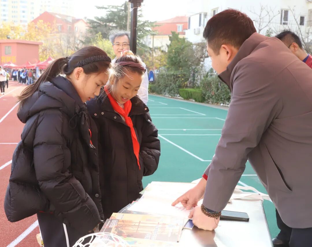 本届大集吸引了众多文化单位的深度参与,形成了多元互补的特色展位群。青岛书城不仅带来了精选书籍,其特色文创产品也吸引了众多目光。青岛作协副主席张吉宙老师亲临现场,举行新书签售会,与热爱文学的孩子们亲切交流、合影留念,进一步点燃了孩子们的创作梦想。青岛出版社与青岛广电综艺传播的展位也各具特色,展示了丰富的出版成果与融媒体阅读产品。三明路社区展位提供了优质社区图书资源与阅读指导服务,生动展现“家校社”三位一体的教育合力。