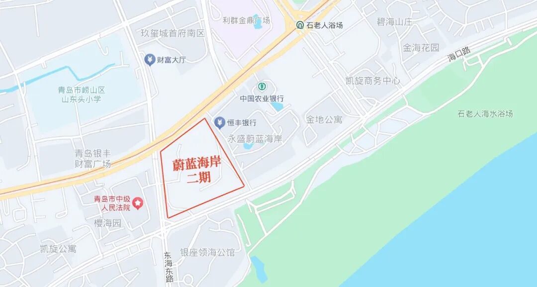 从地理位置来看,该项目位于崂山区香港东路以南,东海东路以东,紧邻崂山利群金鼎广场与鲁商凯悦酒店,与石老人海水浴场仅一路之隔,坐拥一线海景与成熟配套。