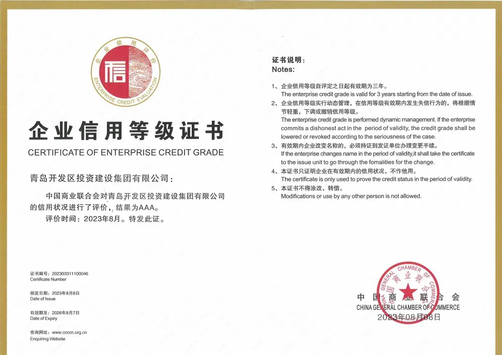 百事信为本,企业在发展中唯有坚持诚信经营,不断树立和强化守法守信的观念,才能行稳致远。开投集团自成立以来始终坚持诚信经营,以诚信立身兴业,时时处处践行诚信文化,在诚信理念引领下,集团近几年斩获百余项荣誉,包括全国AAA级信用企业、中国服务业企业500强、青岛市经济卓越成就单位等。旗下3家子公司获评“全国AAA级信用企业”。党建品牌“阳光开投,奉献有我”深入人心,成为新区“诚信建设示范单位”,集团诚信实践案例入选2025年全国企业诚信建设优质案例,为区域发展注入诚信正能量。