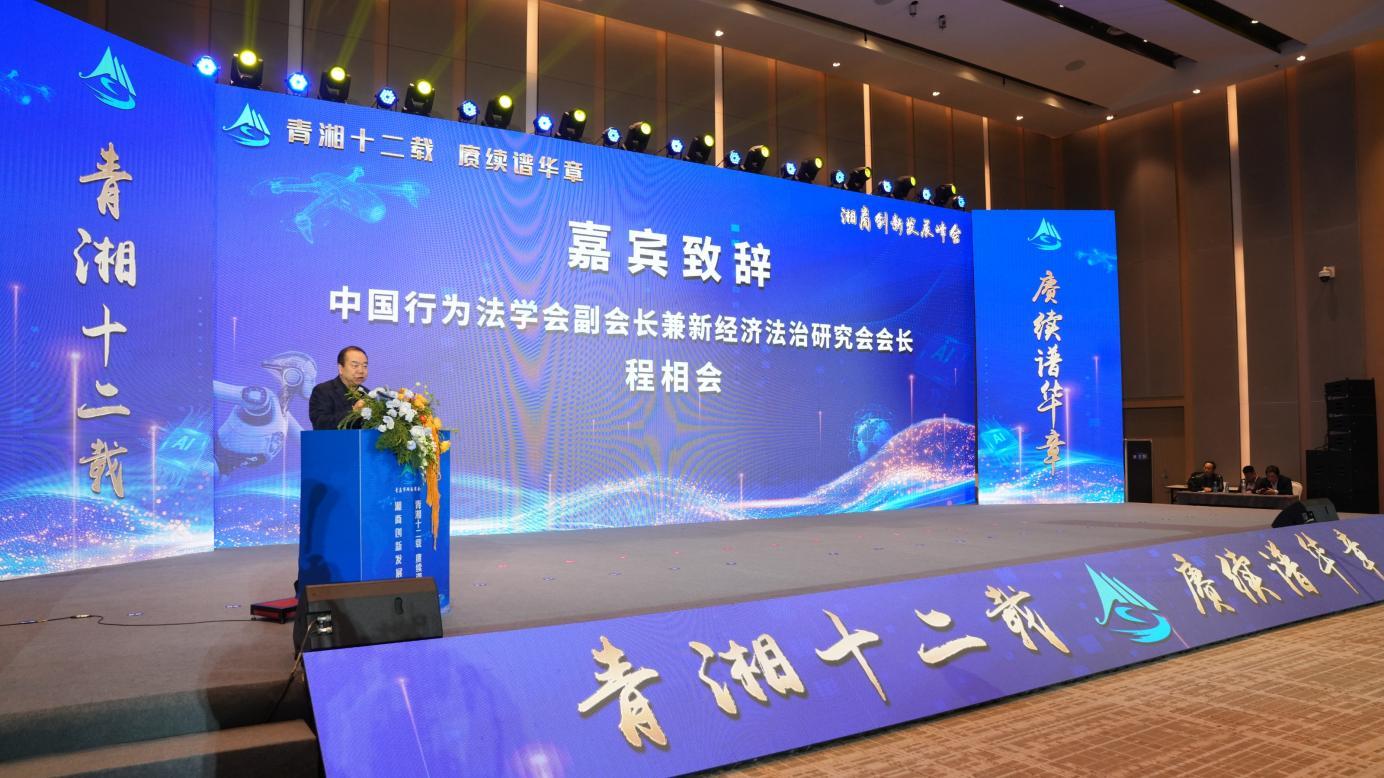 湘商创新发展峰会由AI主持人“湘悦”精彩开场。湖南省政协副主席、省工商联主席张健发来视频寄语。湖南省人民政府驻上海办事处党组成员、副主任马宏平(主持工作),株洲市人民政府副市长、株洲市工商联主席杨胜跃,青岛市工商联党组成员、副主席伦波,衡阳市委统战部副部长、市工商联党组书记雷继红,青岛市社会组织管理局相关领导等参会。中交协低空交通与经济专业委员会副会长兼秘书长李克澄、中国行为法学会副会长兼新经济法治研究会会长程相会等行业智库分别围绕法治化营商环境保障、“低空经济”等战略性新兴产业发展机遇进行了专业分享。