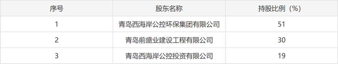 截至目前,青岛海西再生资源有限公司现有股东包括:青岛西海岸公控环保集团有限公司(持股 51%)、青岛前盛业建设工程有限公司(持股 30%)、青岛西海岸公控投资有限公司(持股 19%)。
