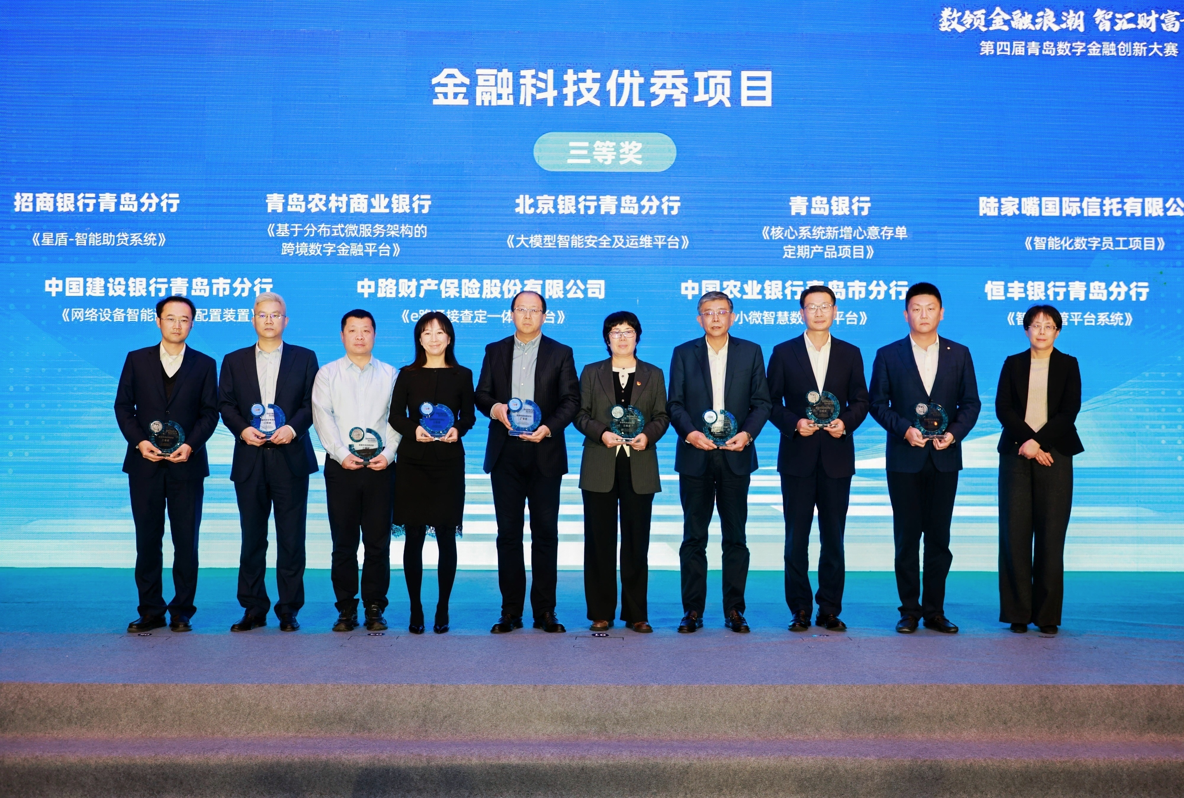 青岛农商银行的“基于大数据分析和隐私计算技术的科技金融赋能项目”、招商银行青岛分行的“青链通”以及青岛银行的“智慧信贷助手系统建设项目”等一等奖项目,代表本地机构在数据要素价值释放、供应链金融生态建设及信贷智能化改造方面的最高水平,“头雁效应”充分凸显。