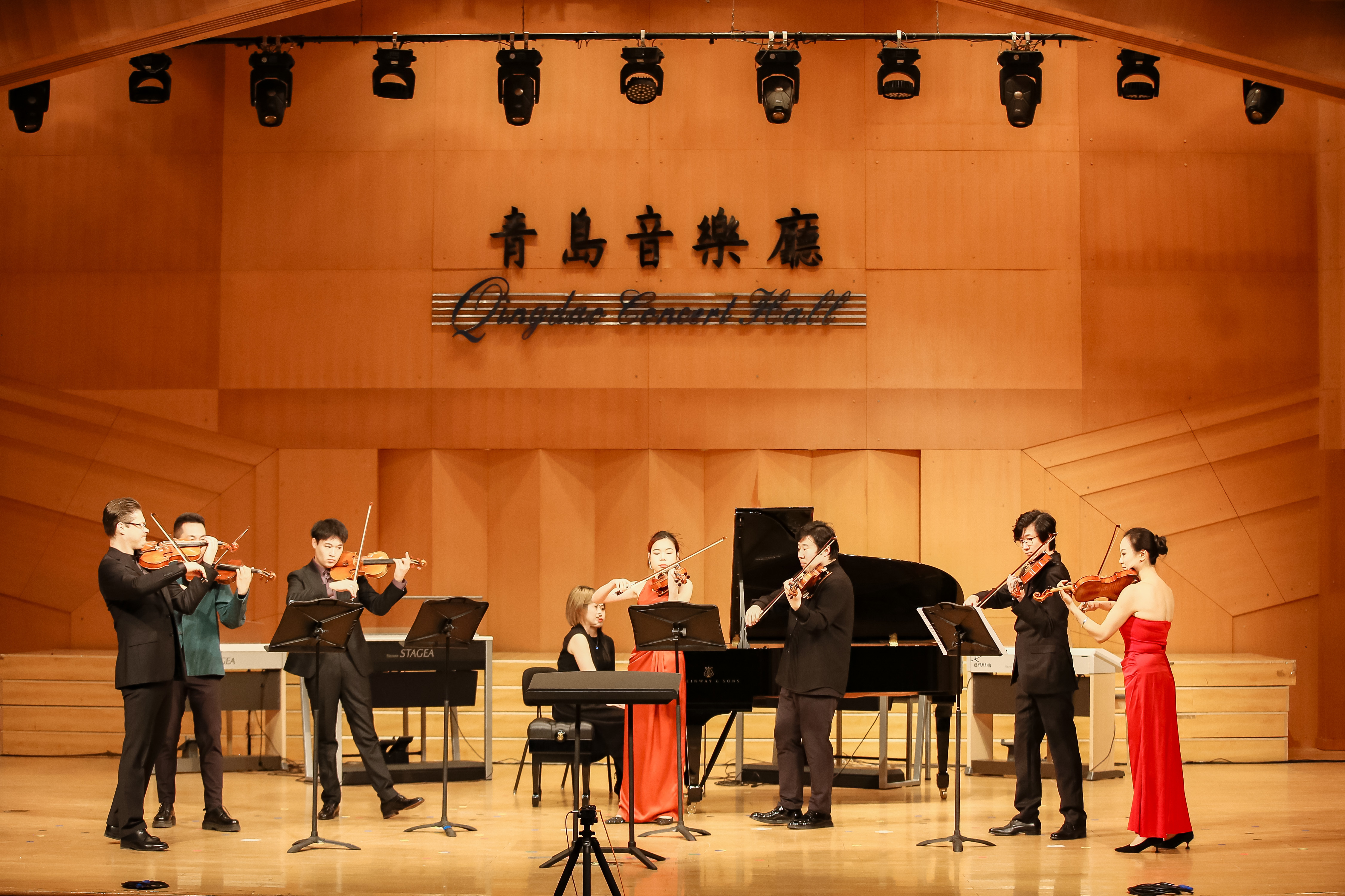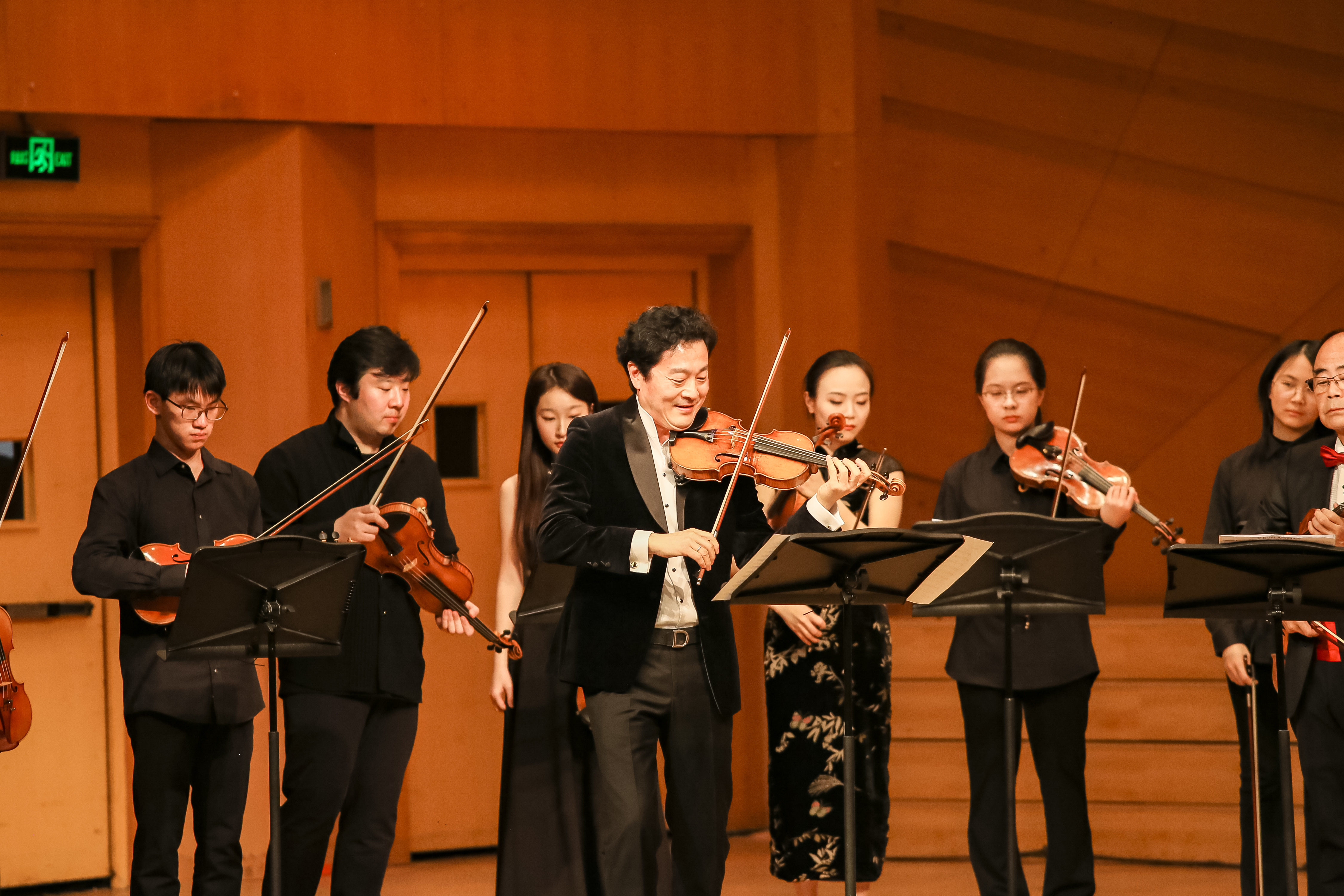 音乐会的最高潮由吕思清校长点燃,他携手该校弦乐团的师生们,共同演绎了维瓦尔第《为四把小提琴和弦乐团而作的协奏曲》。从被梅纽因大师亲自选中的青岛琴童,到载誉归来的创始校长,吕思清的艺术轨迹完美印证了“从青岛走向世界,再将世界带回青岛”的艺术循环,将现场气氛推向顶点。