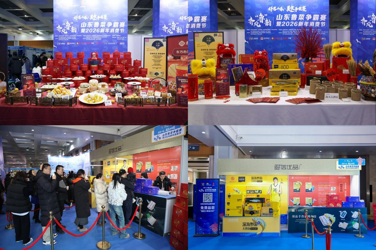 赛事同期举办的2026新年消费节上,国信优品系列新春年货礼盒首次公开亮相,成为现场焦点。2026海天大酒店春节礼盒、东方早茶春节礼盒、国信水产裕鲜舫深海野游大黄鱼、国信知味水饺等产品,与青岛优品、网红农品、非遗食品、老字号珍品、文创美品、异域精品等同台展出,为市民提供了一站式购齐年货的便利体验。