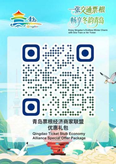 扫码获取青岛市票根经济商家联盟优惠礼包。